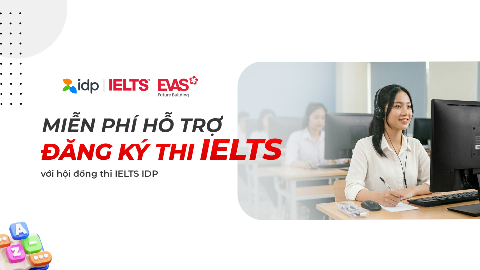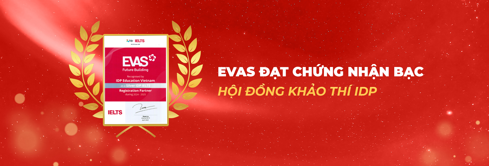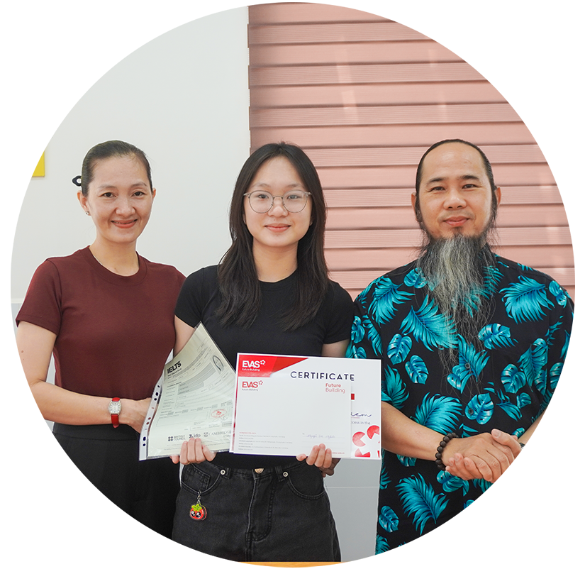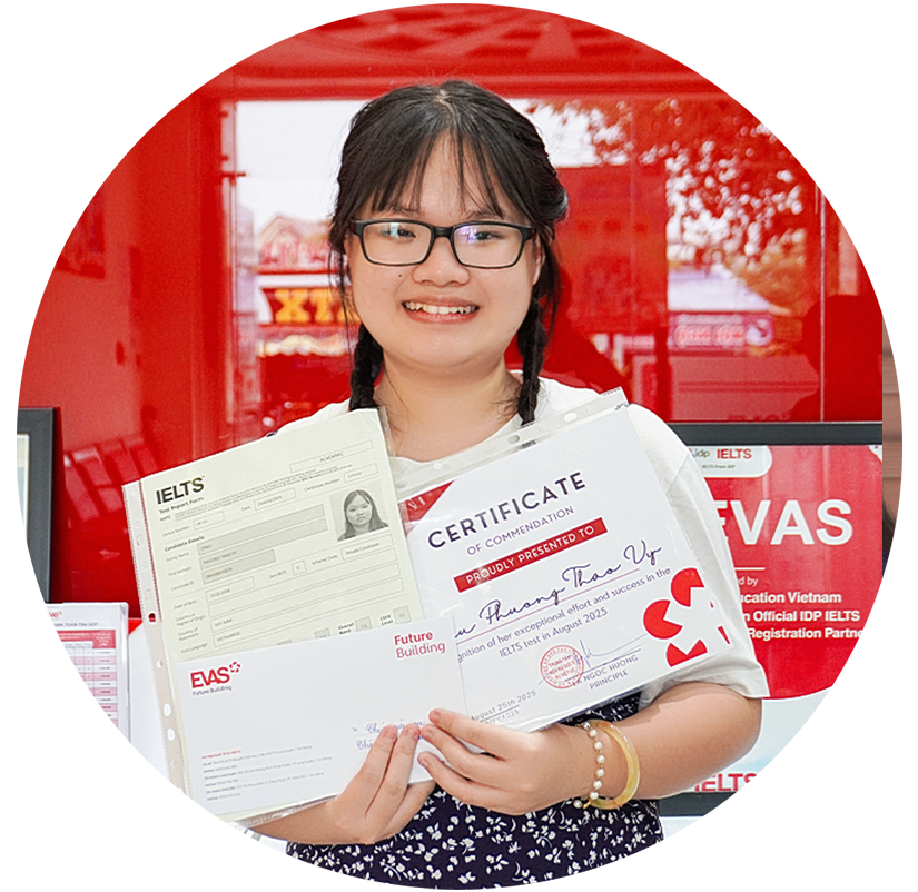 Tại EVAS đã giúp hàng trăm em đạt kết quả cao IELTS 6.0+. Lộ trình đào tạo từ căn bản đến nâng cao, giúp các em hoàn thiện kỹ năng tiếng Anh học thuật Nghe – Nói – Đọc – Viết, đạt được band điểm như kỳ vọng, chuẩn bị cho hành trình du học, nghiên cứu và học tập.