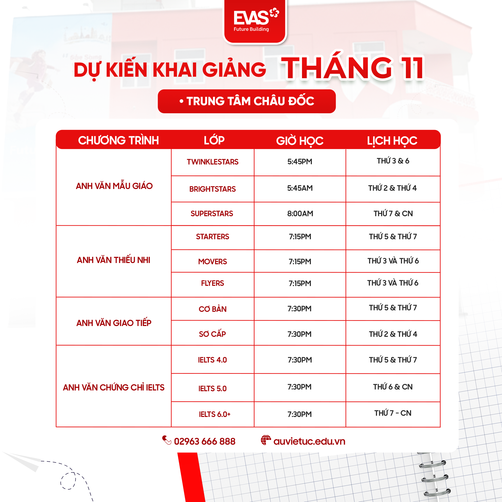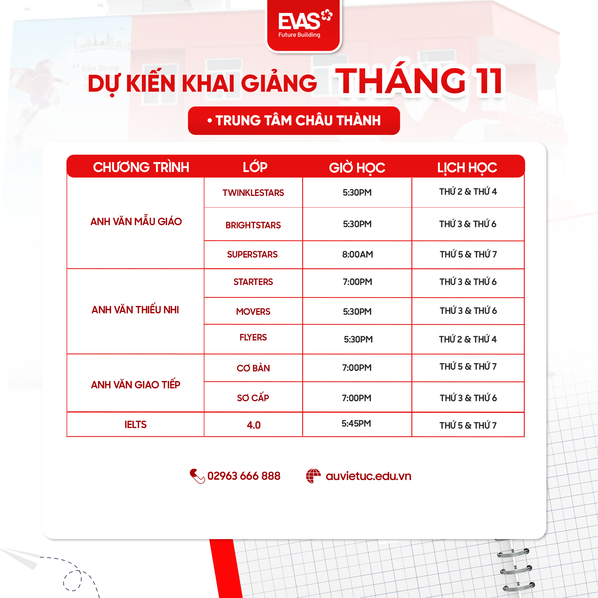 TỔNG KHAI GIẢNG THÁNG 11 TẠI EVAS